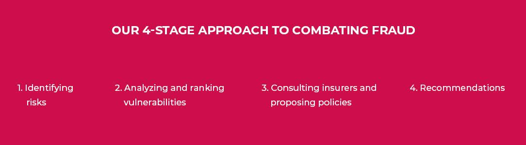 Our experts have introduced a comprehensive 4 -stage approach through which we help you to ask all the right questions. After that, it’s down to you to decide on the level of protection you wish to take out. We’ll be there to negotiate, implement and monitor your fraud insurance.
